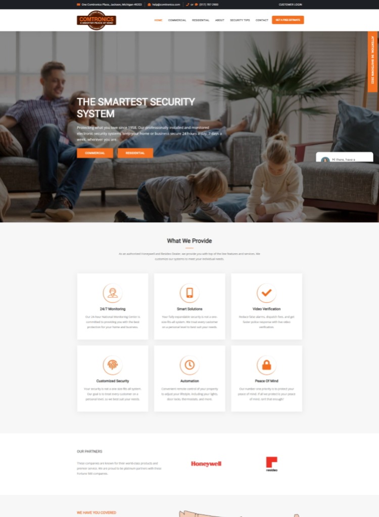 Comtronics needed a solution to showcase their national presence, state of the art products, and exceptional customer care. Their previous website hadn't kept up with their growth and the evolution of their identity, so we started from scratch to create a custom design to fit their brand. We created a content management system to control the blog, slider images, pop-up message, and online estimation products.