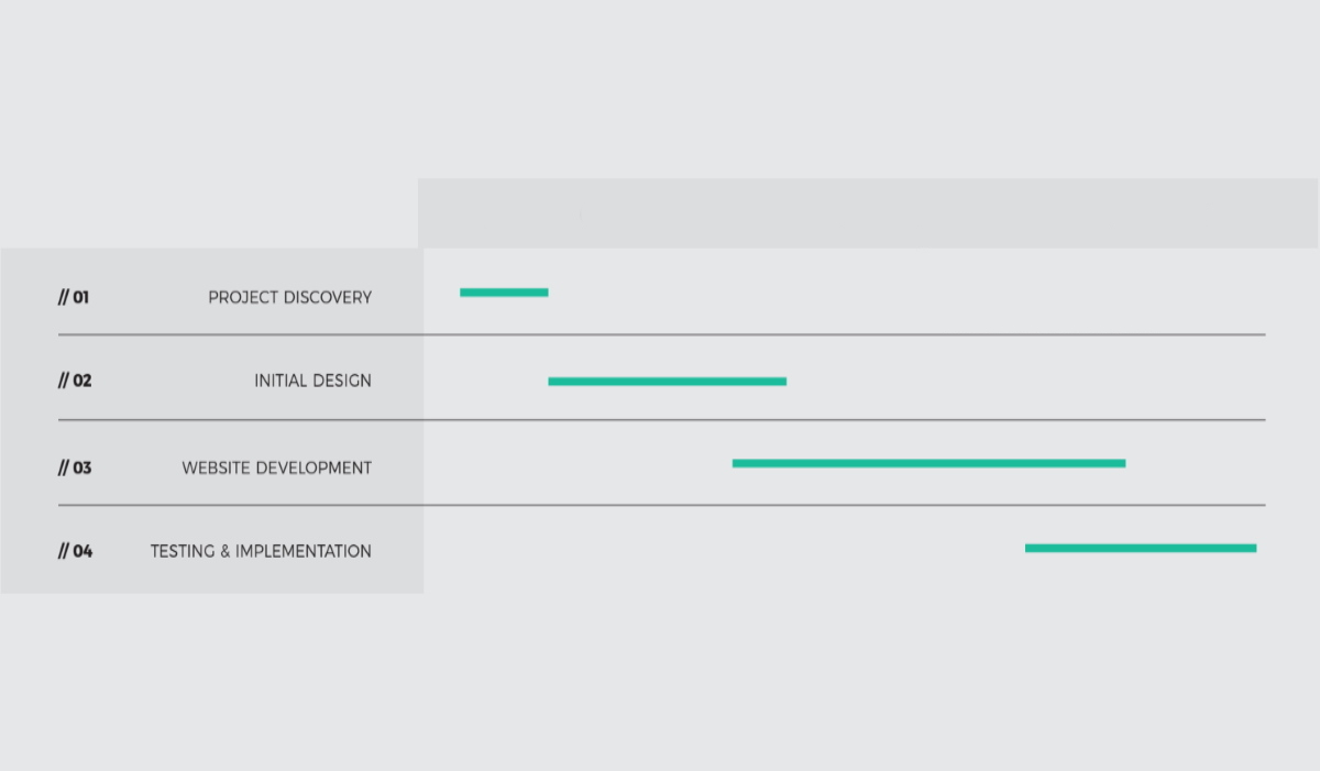 Every project (Core, Plus, and Advanced) has 4 key milestones: Project Discovery, Initial Design, Development, and Testing & Implementation. During the Discovery phase, we discuss both your short and longer-term needs so that we can adjust the scope of the project appropriately up front, and so that we can build the website to be able to scale in the future.